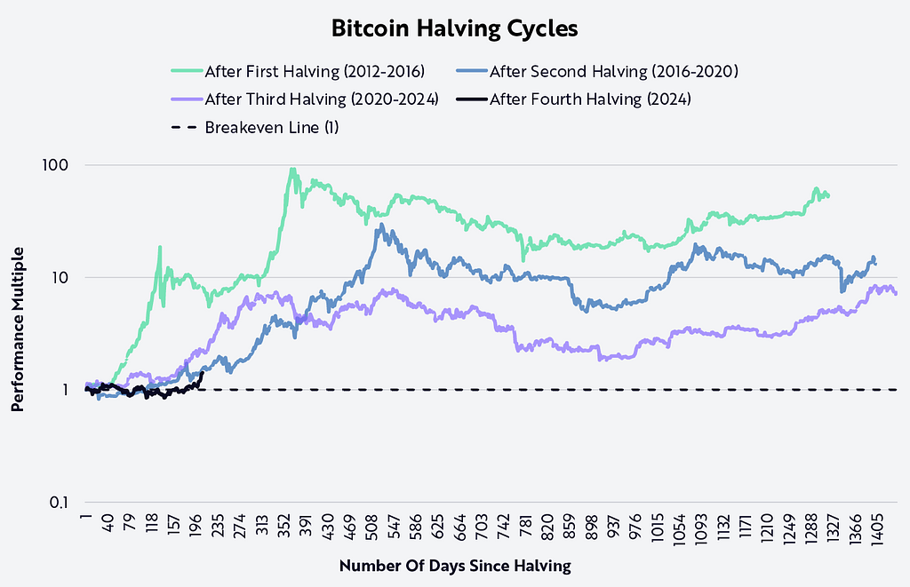 看看经典减半周期对比图,当前周期与前几轮高度重合。