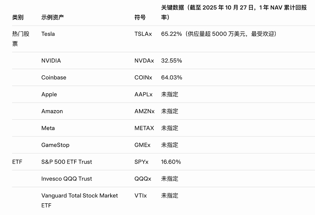 - 供应量里程碑:TSLAx 超 5000 万美元,反映科技股偏好。